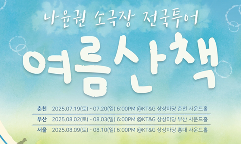 한편 나윤권의 소극장 전국투어 '여름산책'은 온라인 티켓 플랫폼 멜론 티켓을 통해 예매할 수 있으며 오는 6월 9일 오후 7시 춘천 공연의 티켓 오픈이 시작되고 부산 공연은 10일, 서울 공연은 11일 같은 시간에 오픈된다.