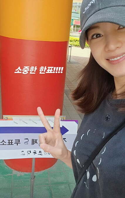 배우 정가은이 제21대 대통령 선거 투표를 인증해 눈길을 끌고 있다.