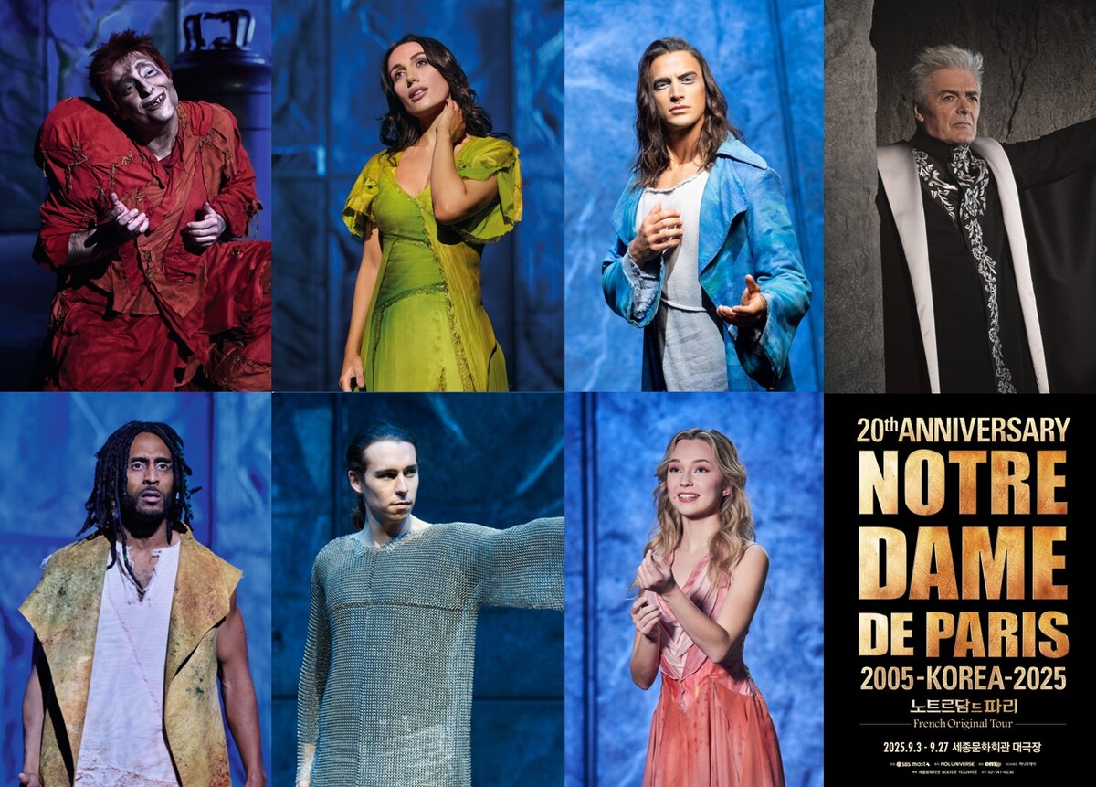 이번 20주년 기념 투어는 세계 무대에서 활약 중인 새로운 캐스트와 오리지널 멤버들이 함께 프렌치 오리지널의 정수와 진한 감성을 고스란히 담아낸 무대를 선사할 예정이다. 추한 겉모습 뒤에 누구보다 순수한 영혼을 지닌 ‘콰지모도’ 역에는 폭발적인 성량과 감성 연기로 강렬한 울림을 선사하는 안젤로 델 베키오(Angelo Del Vecchio)와 섬세한 감정선과 깊은 음색으로 콰지모도의 내면을 절절하게 표현하는 조제 뒤푸르(José Dufour)가 무대에 오른다. 세 남자의 사랑을 받는 매혹적인 집시 여인 ‘에스메랄다’ 역에는 폭넓은 음역으로 자유로운 영혼과 고독한 내면을 완벽히 담아내는 엘하이다 다니(Elhaida Dani), 섬세하고 고혹적인 연기를 선보일 로미나 팔메리(Romina Palmeri)가 출연한다. 거리의 음유시인이자 극의 해설자인 ‘그랭구와르’ 역에는 2021년 첫 내한 이후 국내 팬덤을 형성한 배우이자 유럽 대형 뮤지컬 무대에서 활약해온 지안 마르코 스키아레띠(Gian Marco Schiaretti), 다수의 프랑스 뮤지컬에서 활약하며 탄탄한 무대 내공과 섬세한 표현력을 겸비한 플로 칼리(Flo Carli), 그리고 신선한 감각과 개성 넘치는 에너지로 새로운 ‘그랭구와르’의 탄생을 예고하는 에릭 제트네(Eric Jetner)가 함께한다.