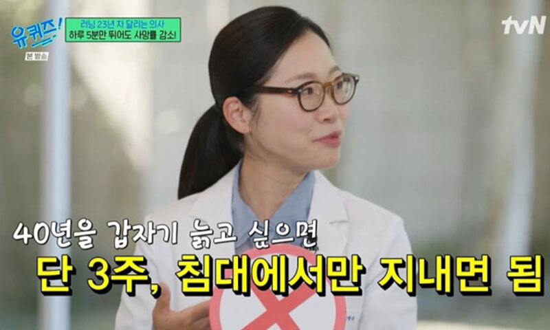 특히 정 교수는 “3주간 침대에만 누워 있으면 40년을 한 번에 늙는 것과 같다”는 연구 결과를 언급해 출연진을 깜짝 놀라게 했다. 그는 “그만큼 심폐 기능이 빠르게 저하되며, 최대 30%까지 떨어질 수 있다”고 경고했다.