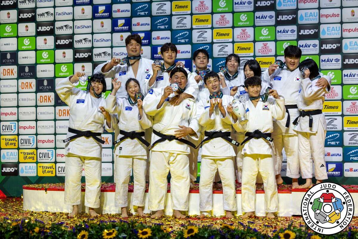 한국 선수단은 21일(한국 시간) 헝가리 부다페스트에서 열린 2025 국제유도연맹(IJF) 세계선수권대회 혼성 단체전 조지아와 결승에서 1-4로 패했다. 앞서 1회전 몽골(4-0), 2회전 프랑스(4-3), 준결승 독일(4-0)을 차례로 꺾은 바 있다.