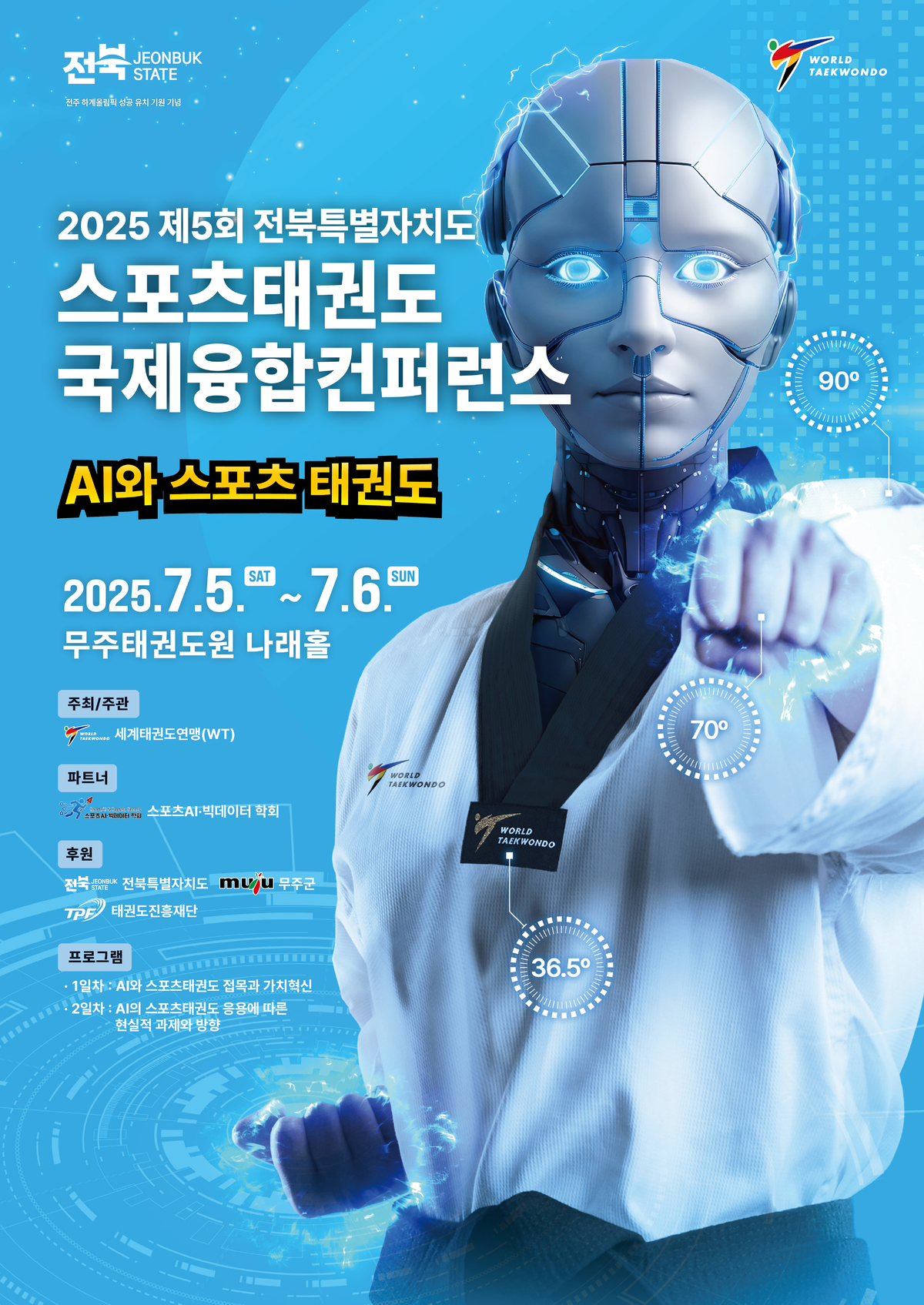 인공지능(AI) 기술을 통해 스포츠태권도의 미래를 조망하고자 하는 국제학술행사 ‘2025 제5회 전북특별자치도 스포츠태권도 국제융합컨퍼런스’가 오는 5일부터 6일까지 이틀간 전북 무주 태권도원 나래홀에서 개최된다.