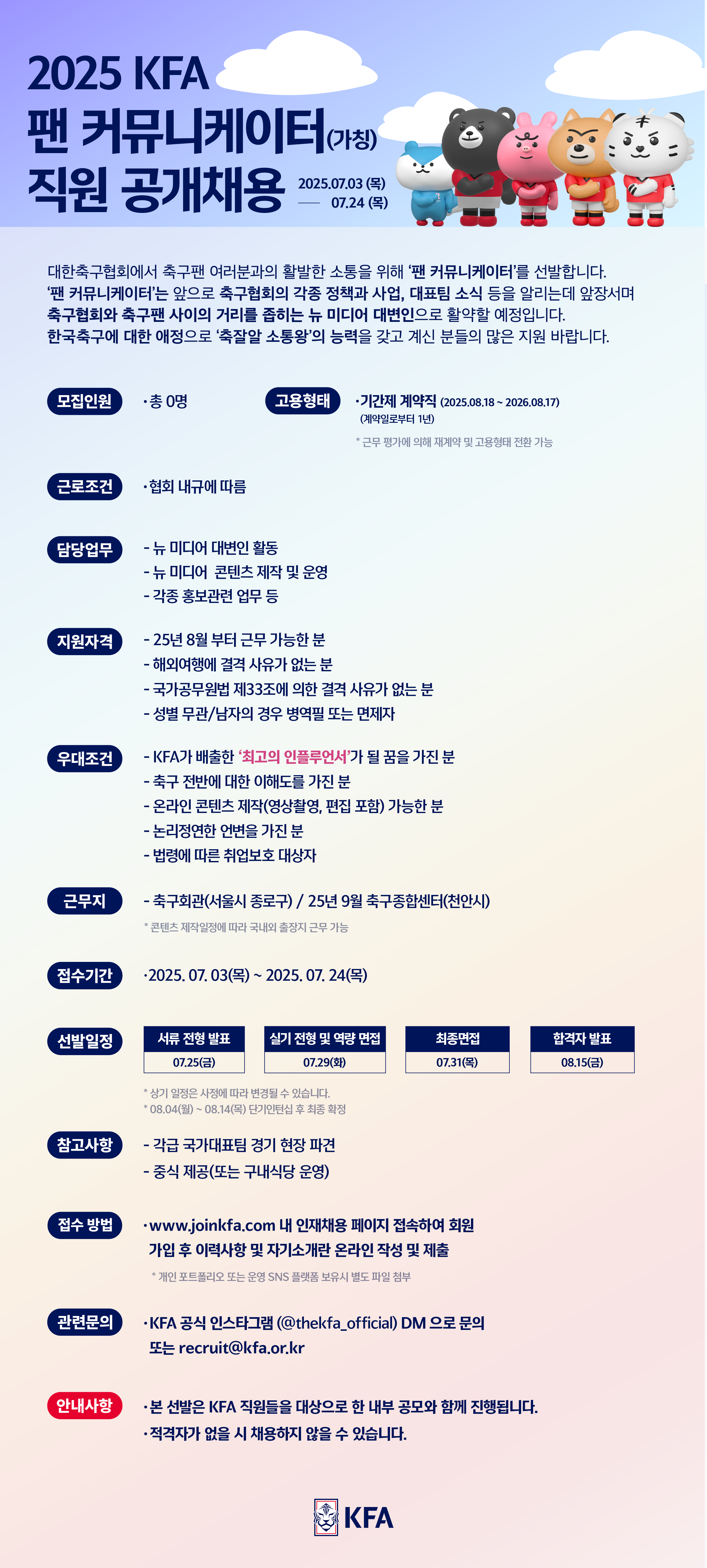 공개 선발한다. 팬 커뮤니케이터는 각급 대표팀 관련 정보를 포함한 대한축구협회의 각종 정책과 사업을 축구팬들에게 자세하고 흥미롭게 알리는데 주력할 예정이다.