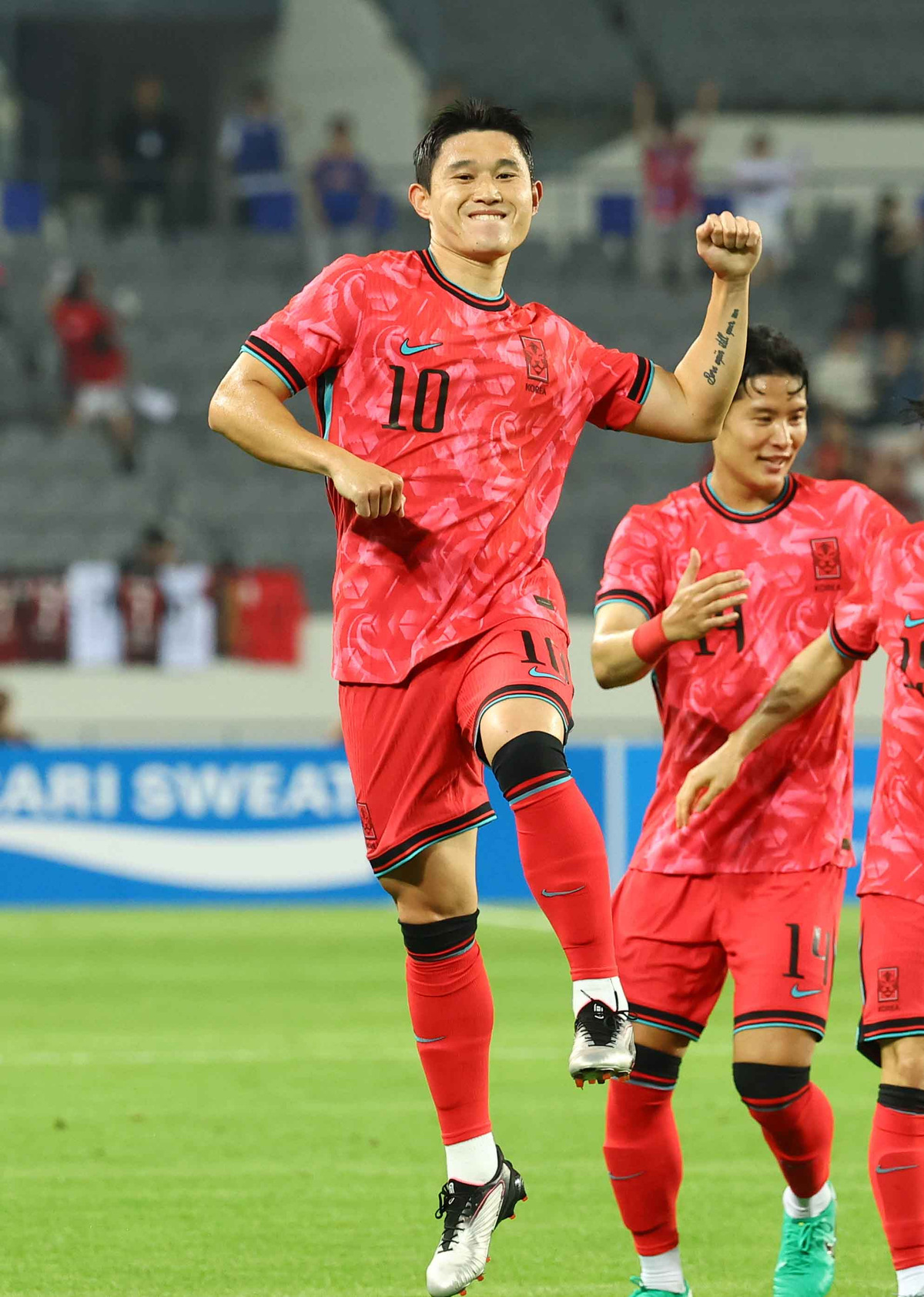 득점 포문은 이동경이 열었다. 이동경은 전매특허인 왼발을 자랑하며 선제골을 신고했다. 전반 8분이었다. 우측 측면에서 김문환(대전)이 이동경에게 패스했다. 이동경은 페널티박스 밖에서 왼발로 강력한 슈팅을 때렸다. 골키퍼가 손을 쓸 수 없는 골대 좌측 상단에 꽂혔다.