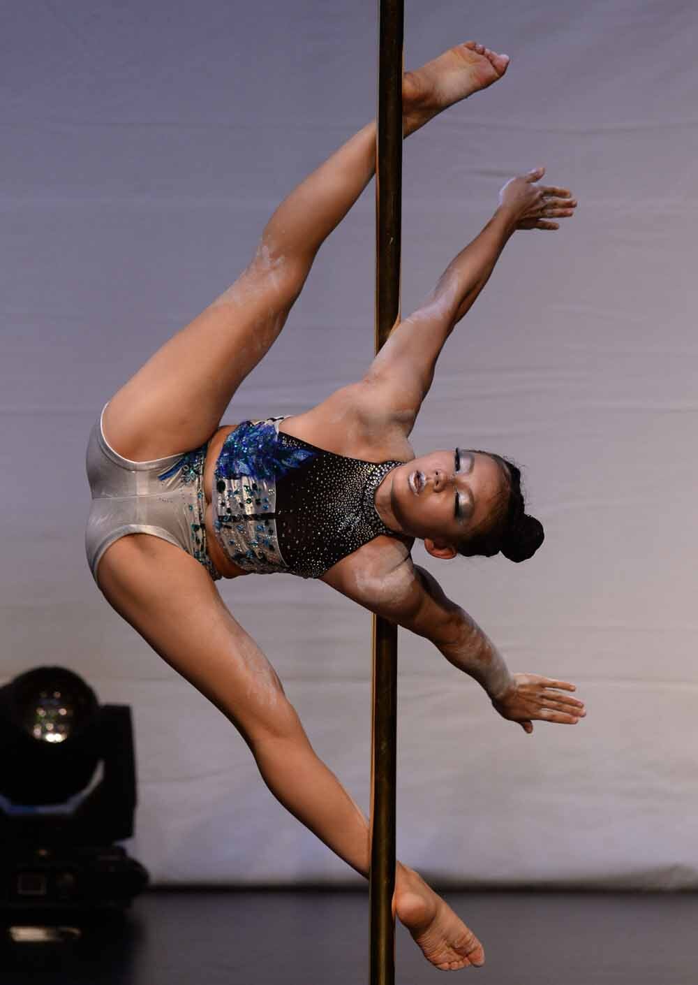 이주화 선수가 12일 경기도 화성시 동탄복합문화센터 반석아트홀에서 열린 2025한국폴스포츠선수권대회 및 2025국가대표선발전에서 폴스포츠 연기를 선보이고 있다.