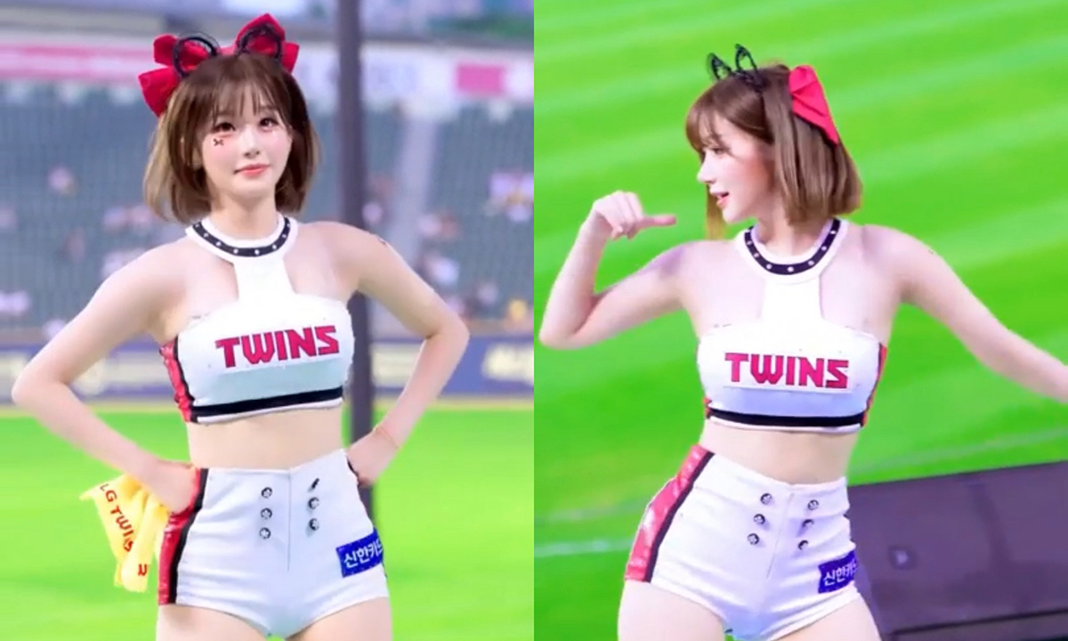 치어리더 이주은이 파격적인 유니폼과 함께 LG 트윈스 경기장에서 매력을 뽐냈다.