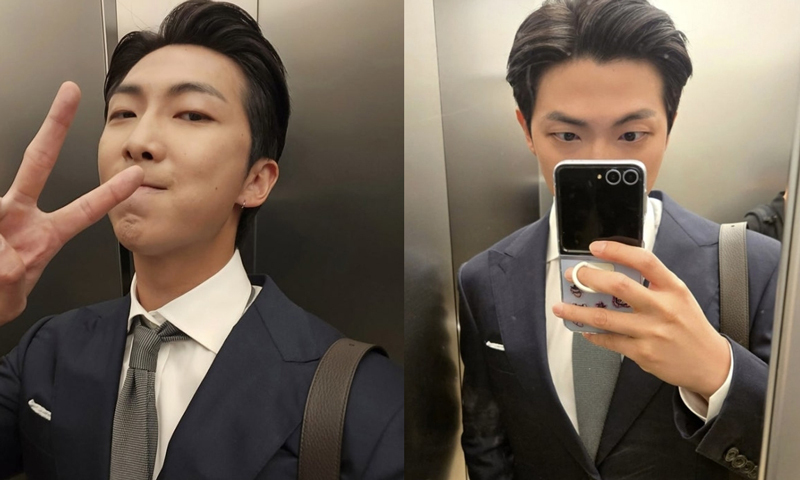그룹 방탄소년단(BTS)의 리더 RM이 차분한 수트핏에 장꾸 매력이 담긴 사진을 공개해 이목을 끈다.