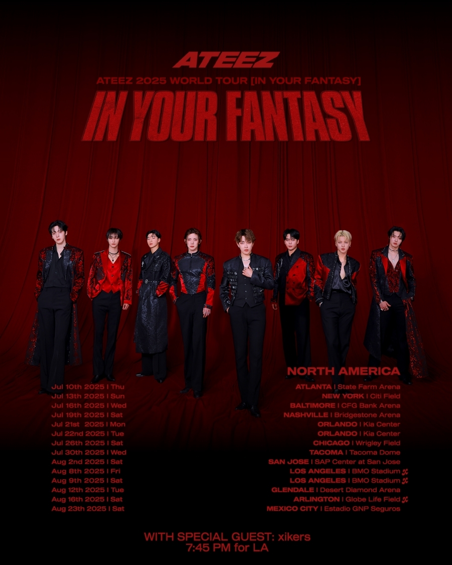 소속사 KQ엔터테인먼트는 지난 25일 오후 11시 SNS를 통해 '에이티즈 2025 월드 투어 '인 유어 판타지'(ATEEZ 2025 WORLD TOUR 'IN YOUR FANTASY')' 북미 투어 일정이 담긴 포스터를 공개하고 싸이커스의 출격 소식을 알렸다.