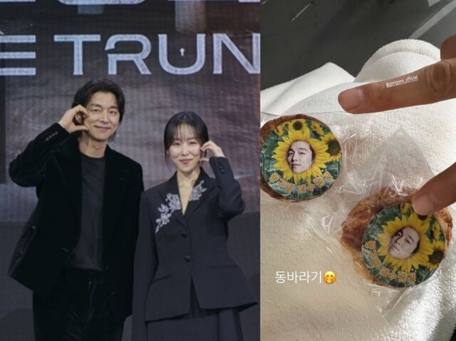 같은 현장에서 함께 작품을 촬영 중인 송혜교 역시 SNS에 커피차에 부착된 공유 얼굴 스티커 쿠키를 인증하며 “동바라기”라는 짧은 글을 남겨 화제를 더했다.