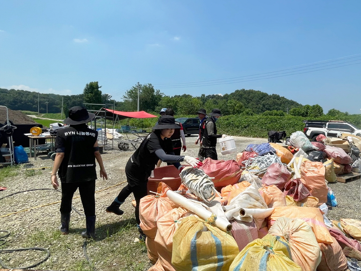 BYN블랙야크그룹의 사회복지법인 블랙야크강태선나눔재단이 기록적인 폭우로 막대한 피해를 입은 충남 홍성군을 찾아 수해 복구를 위한 봉사 활동에 나섰다.