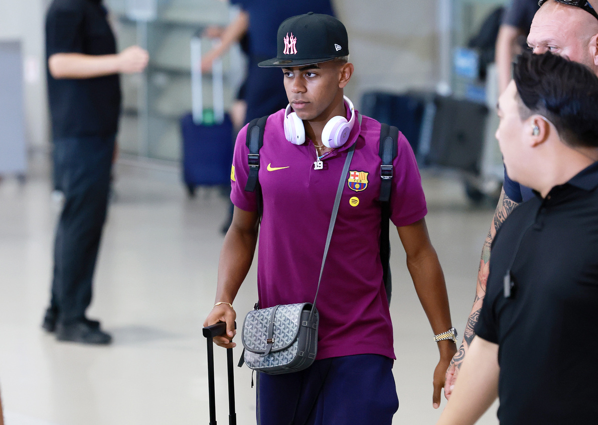 바르셀로나 라민 야말이 지난 29일 인천국제공항 제2여객터미널을 통해 입국하고 있다. 사진=뉴시스