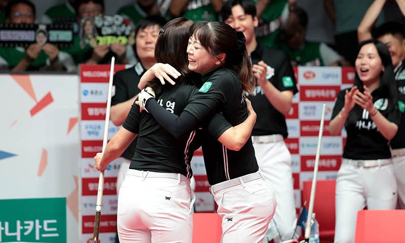 이어 5세트(남자단식)에 나선 신정주가 로빈슨 모랄레스(콜롬비아)를 11-4(5이닝)로 따돌리며 리드를 잡았고, 6세트(여자복식)엔 김가영이 차유람을 9-7(8이닝)로 제압하고 팀의 세트스코어 4-2 승리를 완성했다.
