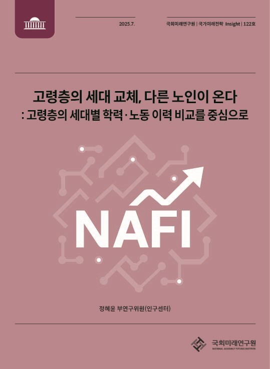 국회미래연구원은『국가미래전략 Insight』‘고령층의 세대 교체, 다른 노인이 온다: 고령층의 세대별 학력·노동 이력 비교를 중심으로’를 발간했다고 31일 밝혔다.