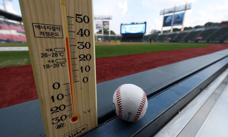 프로야구는 이미 무더위와 전쟁 중이다. 한국야구위원회(KBO)를 중심으로 발 빠르게 움직이고 있다. 더블헤더 편성 기간과 경기 개시 기간을 일부 조정했다. 폭염 정도에 따라 클리닝타임(기존 4분)을 최대 10분까지 연장할 수 있다. 컨디션 조절을 위한 냉방기기와 음료도 다수 배치했다. 지난해 그 위력을 몸소 경험했기 때문이다. 8월 2일 울산 문수야구장서 열릴 예정이었던 롯데와 LG의 맞대결이 폭염으로 취소됐다. 1982년 출범 이래 처음 있는 일이었다.