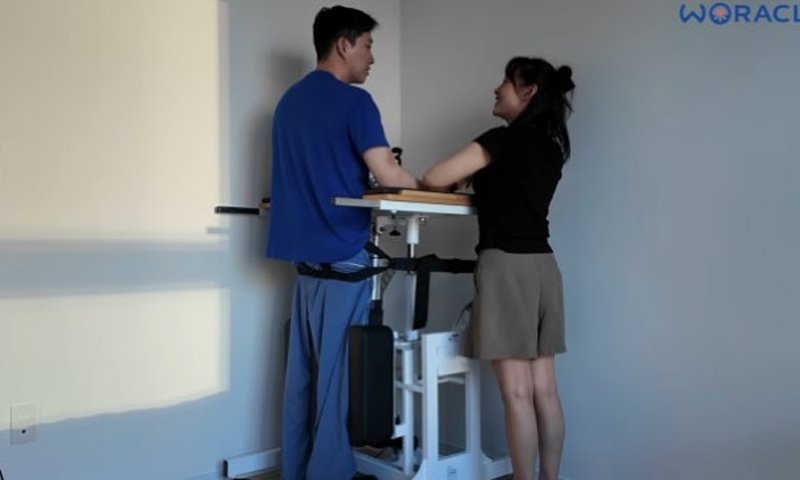 박위는 3일 유튜브 채널 '위라클'에서 송지은과 함께하는 일상을 공개하며 집에 설치한 특수 기계를 통해 일어서는 순간도 공개했다.