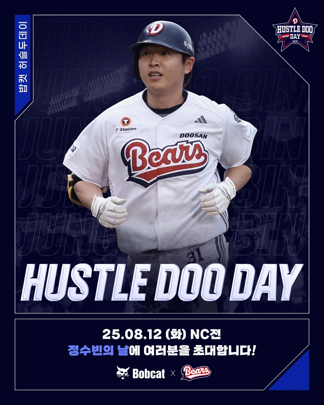 프로야구 두산이 오는 12일 서울 잠실 야구장에서 열리는 NC와의 정규리그 맞대결에서 ‘정수빈 밥캣허슬두데이’ 행사를 진행한다.
