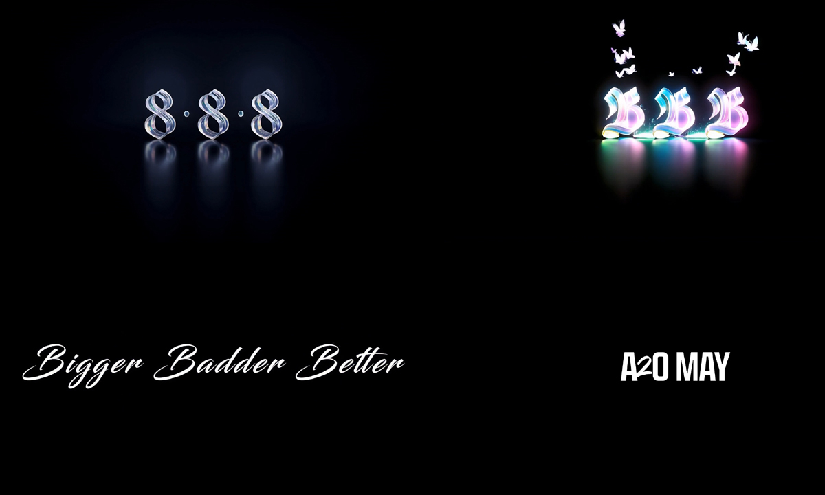 티저는 은빛이던 ‘8.8.8’ 로고가 영롱한 컬러의 ‘B.B.B’로 화려하게 전환되는 모션 그래픽으로 눈길을 사로잡았다. 이어 수많은 나비들이 ‘B.B.B’ 로고 주위를 신비롭게 밝히다 사라졌고, 그 자리에는 ‘Bigger Badder Better’라는 당찬 무드의 문구가 나타났다. ‘Bigger Badder Better’를 의미하는 신곡명 ‘B.B.B’처럼, A2O MAY가 어떤 진화한 매력을 보여줄지 궁금증이 모인다.