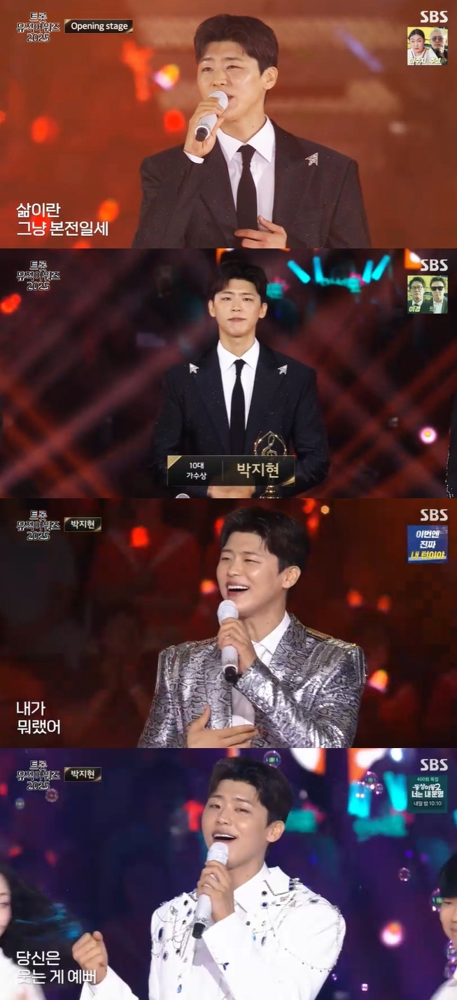 박지현은 10일 오전 11시 5분부터 방송된 SBS ‘트롯뮤직어워즈 2025’(TROT MUSIC AWARDS 2025)에 등장, 10대 가수상의 영예를 안았다.