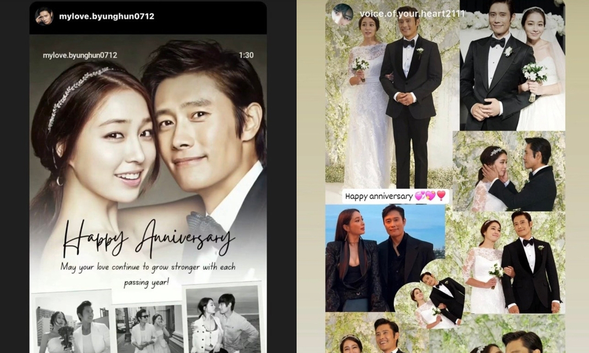 팬들이 편집해 올린 사진 속에는 두 사람의 과거 결혼식 사진이 여러장 담겨 풋풋함을 자아냈다.