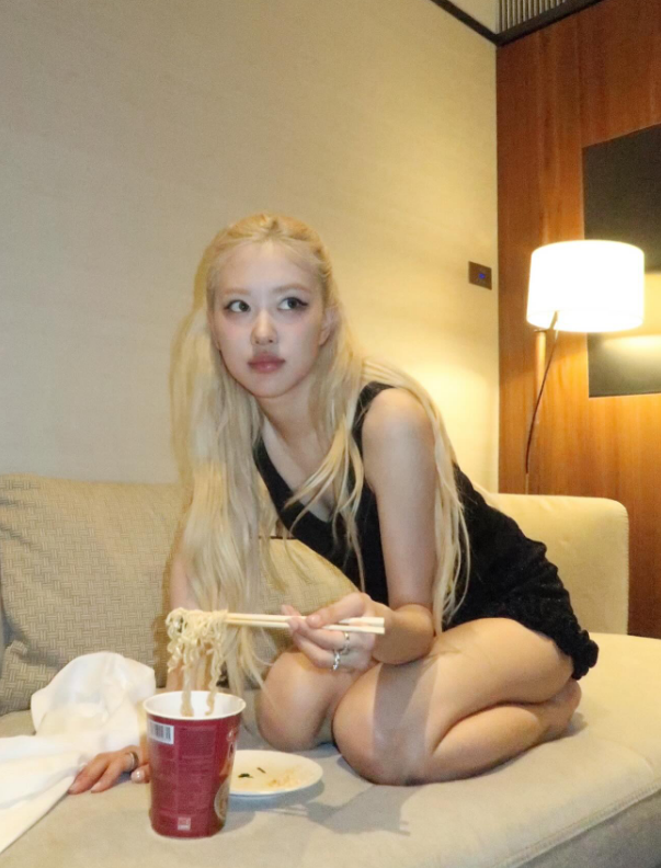 블랙핑크 멤버 로제가 11일 자신의 인스타그램에 해외 투어 중 찍은 근황 사진을 올렸다. 여러 장의 사진 중 특히 눈길을 끈 건 호텔에서 컵라면을 즐기는 모습이었다. 포장지에 드러나는 ‘너구리’의 존재감이 팬들의 시선을 사로잡았다.