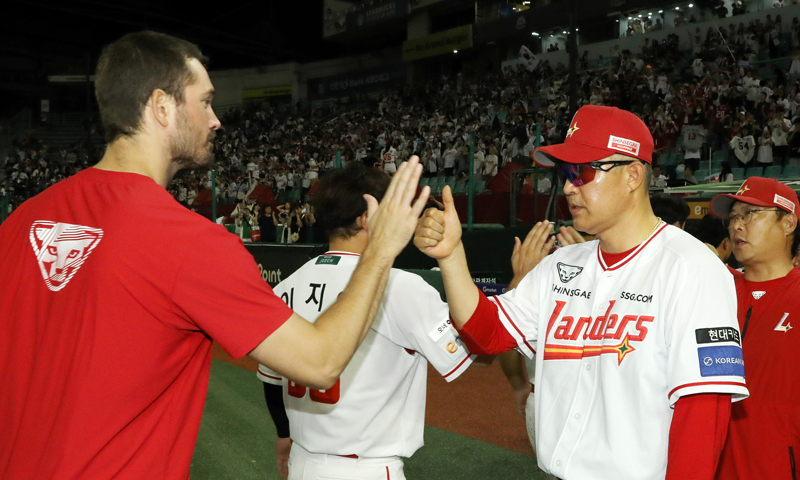 야수진을 향한 칭찬도 잊지 않았다. 이 감독은 “타선에서는 (하)재훈이의 2회 투런 홈런으로 초반 승기를 잡았다. 7회 나온 (한)유섬이의 적시타로 추가 점수를 뽑은 부분이 결정적이었다”고 전했다. 그러면서 “투타 밸런스와 집중력으로 3연승을 만들었는데 지금 분위기를 잘 이어가도록 하겠다”고 각오를 다졌다.