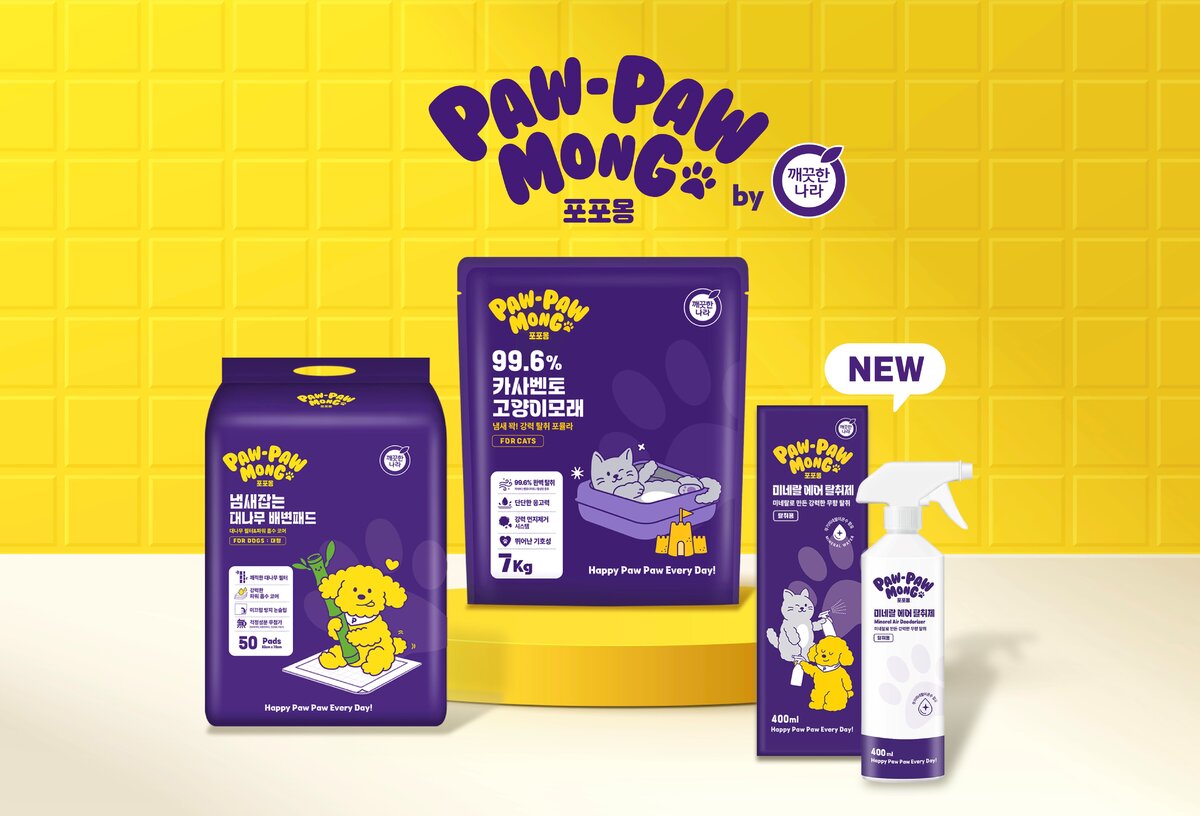이 같은 반려인들의 고민 해결을 위해 깨끗한나라의 반려동물 브랜드 포포몽(PAW-PAW MONG)이 여름철 냄새 고민을 해결할 탈취 특화 펫케어 신제품 3종을 출시했다고 14일 밝혔다. ‘포포몽 99.6% 카사벤토 고양이 모래’, ‘포포몽 냄새잡는 대나무 배변패드’, ‘포포몽 미네랄 에어 탈취제’다.