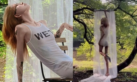 영상 속 최준희는 숲속에서 흰 시스루 천을 배경 삼아 서 있었으며, 몸에 밀착되는 미니 원피스로 탄탄한 실루엣과 긴 다리를 드러냈다. 햇살이 비치는 가운데 긴 머리를 늘어뜨린 채 여유로운 포즈를 취하며 매혹적인 분위기를 풍겼다.