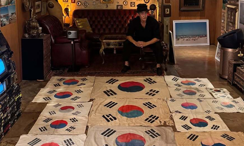 사진 속에는 배정남은 그동안 모은 보기 드문 1950년대 태극기들을 바닥에 가득 깔아두고 그 뒤에서 포즈를 취하고 있다. 빛이 바래고 올이 풀린 태극기부터 피가 묻어 있는 태극기까지 다양한 종류의 태극기가 눈길을 끈다.