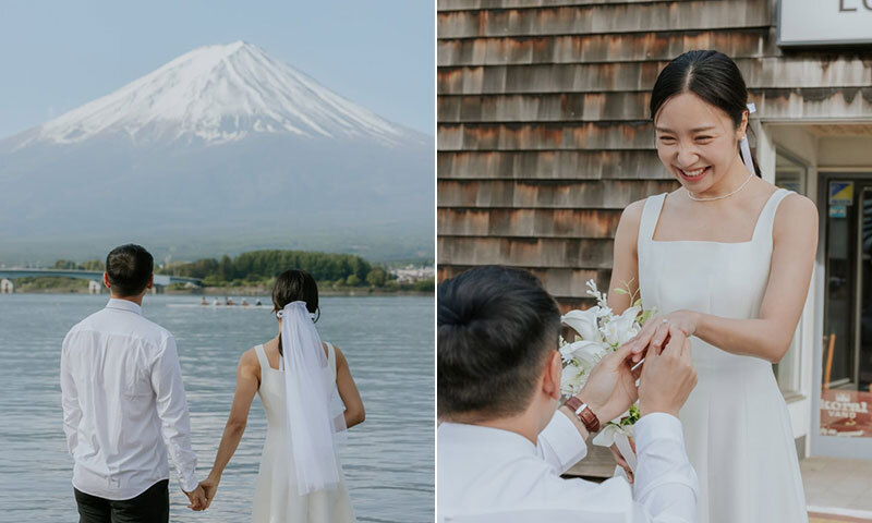 함께 공개된 사진 속 메이제이는 순백의 웨딩드레스를 입고 예비 신랑과 함께 손을 맞잡은 채 일본 후지산을 배경으로 행복한 모습을 담아냈다. 두 사람은 청명한 자연 풍경 속에서 영원한 사랑을 약속하며 따뜻한 분위기를 자아냈다.