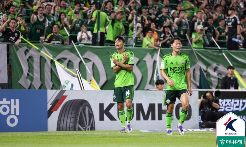 겹경사도 노려본다. 신기록 우승과 함께 득점왕까지 안겠다는 각오다. ‘전북 골잡이’ 전진우가 다시 시동을 켰다. 전진우는 대구전에서 쐐기골을 집어넣으며 7경기 만에 침묵을 깼다. 13골로 득점왕 선두자리를 탈환했다. 득점 2위는 수원FC 싸박(12골)이다. 그 뒤를 전북 콤파뇨가 바짝 쫓는다. 콤파뇨는 대구전에서 2골을 신고, 주민규(대전하나시티즌), 이호재(포항스틸러스)와 공동 3위(11골)에 올랐다.