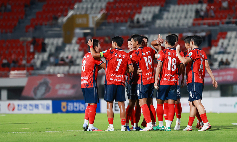 김천상무프로축구단이 17일 김천종합운동장에서 열린 ‘하나은행 K리그1 2025’ 26R 홈경기에서 FC서울에 6-2로 승리하며 2위를 탈환했다. 돌아온 가변석과 함께 홈팬의 뜨거운 응원을 받은 김천상무는 첫 맞대결 이후 10경기 만에 서울에 승리를 거두었다.