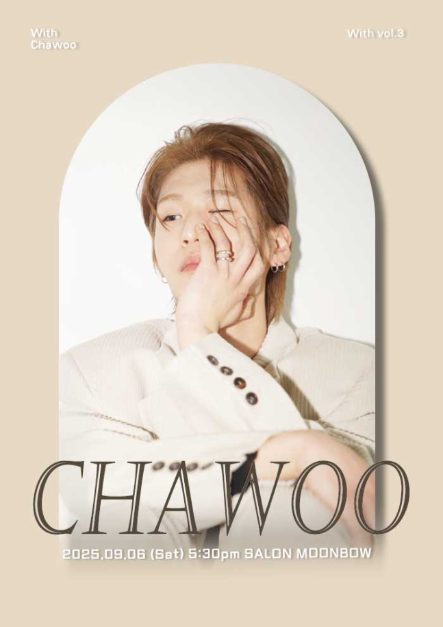 차우가 출연하는 기획 공연 ‘With 차우(Chawoo)’가 오는 9월 6일 마포구 공연장 살롱문보우에서 개최된다.
