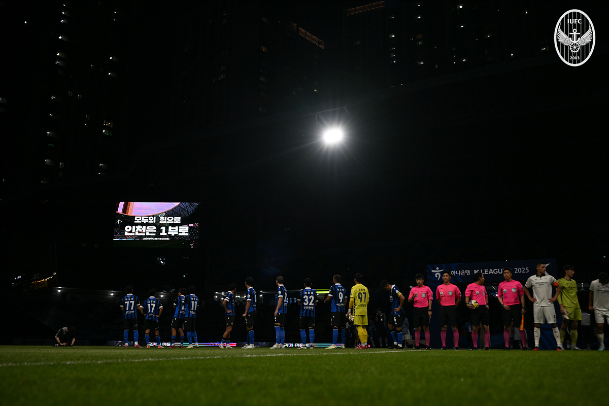 인천유나이티드가 16일 오후 8시 인천축구전용경기장에서 열린 성남FC와의 ‘하나은행 K리그2 2025’ 25라운드 홈경기에서 K리그1 승격을 위한 ‘범시민 캠페인’의 슬로건 선포식을 개최하며 캠페인의 본격적인 시작을 알렸다.