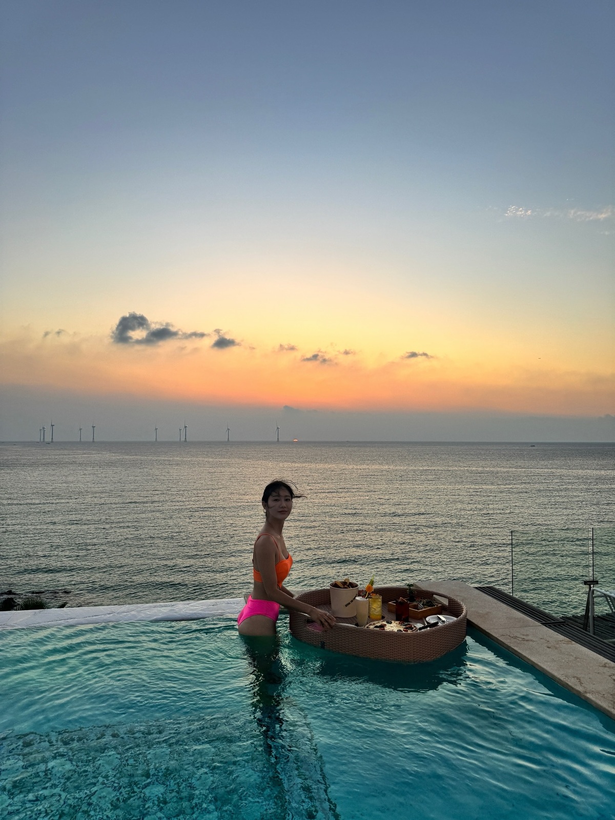 공개된 사진 속 한그루는 형광색 비키니를 입고 제주 바다를 배경으로 여유로운 시간을 보내고 있는 모습이다. 강렬한 색감의 수영복이 건강미를 한층 돋보이게 하며, 자연스러운 미소는 편안하면서도 세련된 분위기를 자아냈다.