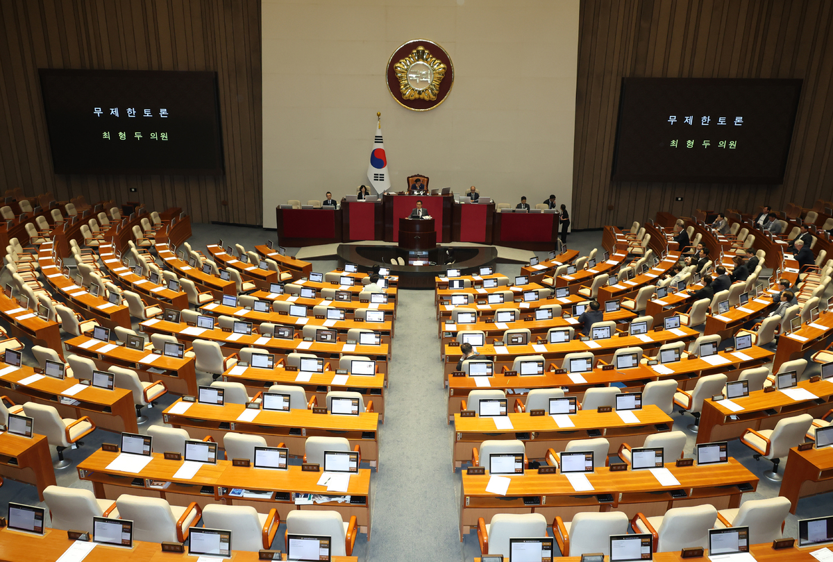 필리버스터는 22일 오전 종결된다. 다만 국민의힘의 전당대회 일정을 고려해 EBS법의 표결은 23일 본회의에서 진행될 전망이다.