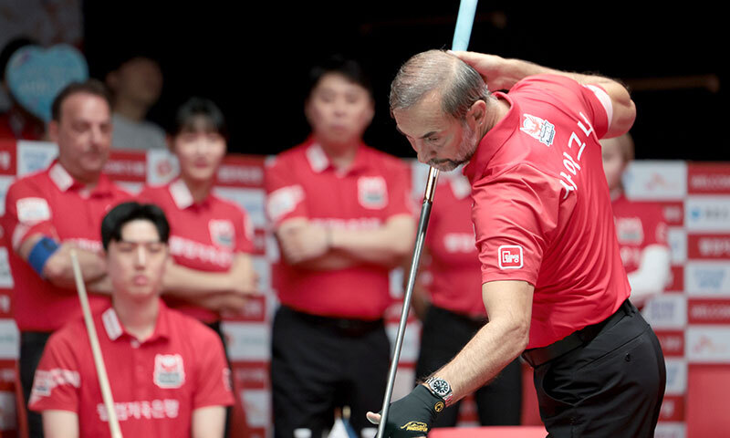 웰컴저축은행은 NH농협카드를 상대로 1세트(남자복식)서 사이그너가 한지승과 호흡을 맞춰 ‘스페인 듀오’ 안토니오 몬테스-이반 마요르를 11-8(10이닝)로 돌려세웠지만, 2세트(여자복식)에선 김예은-용현지가 김보미-김민아에 3-9(6이닝)로 패배하며 세트스코어 1-1이 됐다.