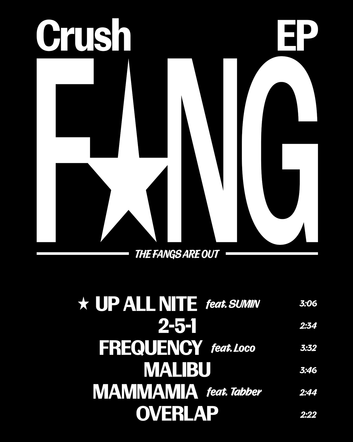 크러쉬는 지난 21일 오후 공식 SNS 채널을 통해 새 EP 앨범 ‘FANG(팽)’의 트랙리스트를 오픈했다.
