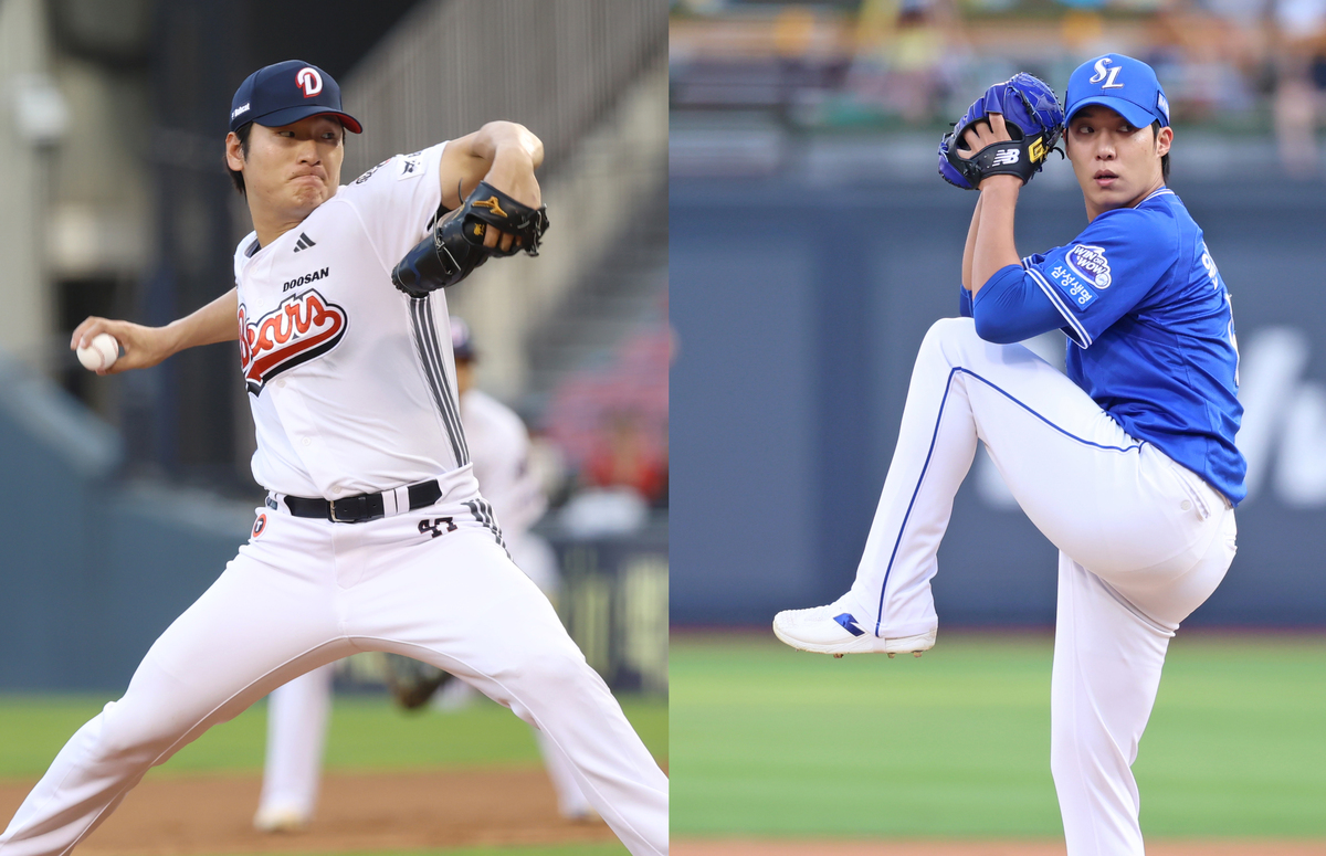 이날 마운드 대결은 일찌감치 주목받았다. 최근 국가대표로 여러 차례 선발돼 국제대회서도 활약 중인 두 투수가 맞붙었기 때문. 홈팀 두산은 곽빈을, 이에 맞서는 삼성은 원태인을 앞세워 주중 3연전 첫 경기 기선제압에 나섰다. 0의 흐름이 깨진 건 3회 초다. 삼성이 곽빈 상대로 선취점을 뽑아낸 것. 2사 1루에서 터진 구자욱의 1타점 적시 2루타로 앞서갔다.
