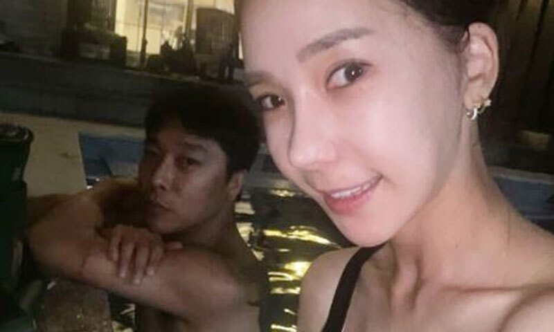 공개된 사진 속 인민정은 남편 김동성과 함께 펜션 수영장에서 야간 수영을 즐기며 여유로운 시간을 보내고 있다.