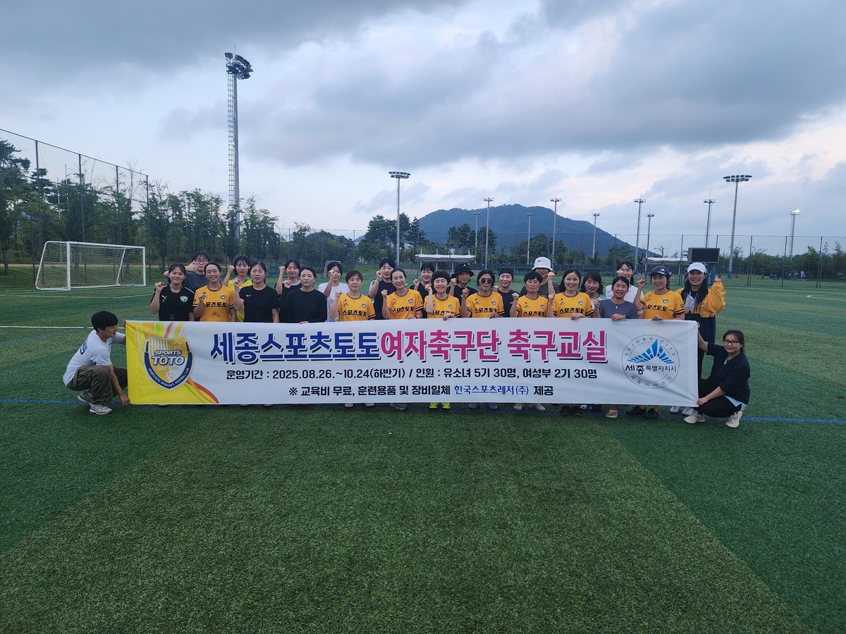 세종시 여자축구의 저변 확대와 발전을 위해 기획한 축구교실은 세종시의 초등학교 3학년부터 6학년까지를 대상으로 한 유소녀 30명과 나이 제한이 없는 일반 성인 여성부 30명 등 총 60명을 모집했다. 선정된 여성축구인들은 오는 10월까지 화요일과 금요일을 통해 총 12회차의 체계적인 축구 수업을 받게 된다.