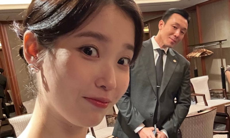 박 경호원은 지난달 28일 자신의 소셜 미디어에 아이유와 함께 촬영한 사진을 올렸다. 각 잡힌 슈트 차림의 그는 서울 소공동 롯데호텔서울 한 대기실에서 원피스 차림을 한 아이유 뒤에서 미소를 짓고 있는 모습이다.