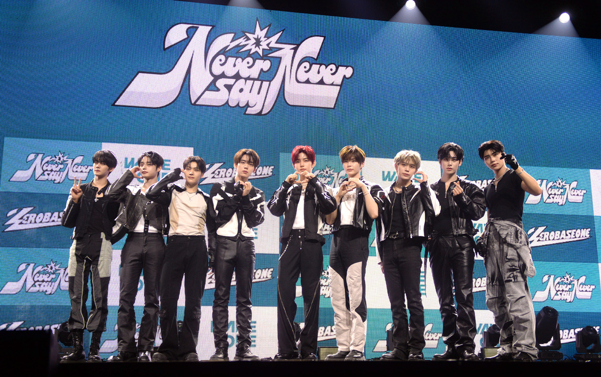 제로베이스원 멤버들은 지난 1일 열린 첫 정규앨범 ‘네버 세이 네버(NEVER SAY NEVER)’ 발매 기념 쇼케이스에서 계약 관련 질문에 답했다.