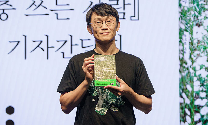 2일 서울 종로구 노무현시민센터에서는 윤덕원의 ‘열심히 대충 쓰는 사람’ 출간 기념 간담회가 열렸다. 지난 1일 출간한 열심히 대충 쓰는 사람에는 에세이 39편과 더불어 앵콜요청금지·졸업 등 오랫동안 회자되는 14곡의 가사와 화제를 모았던 앨범 소개문 13편이 수록됐다.