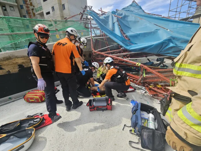 소방 당국 등에 따르면 50대 남성 A씨는 이날 GS건설 아파트 공사장 15층에서 외벽에 거푸집을 설치하는 작업을 하던 중 추락했다.