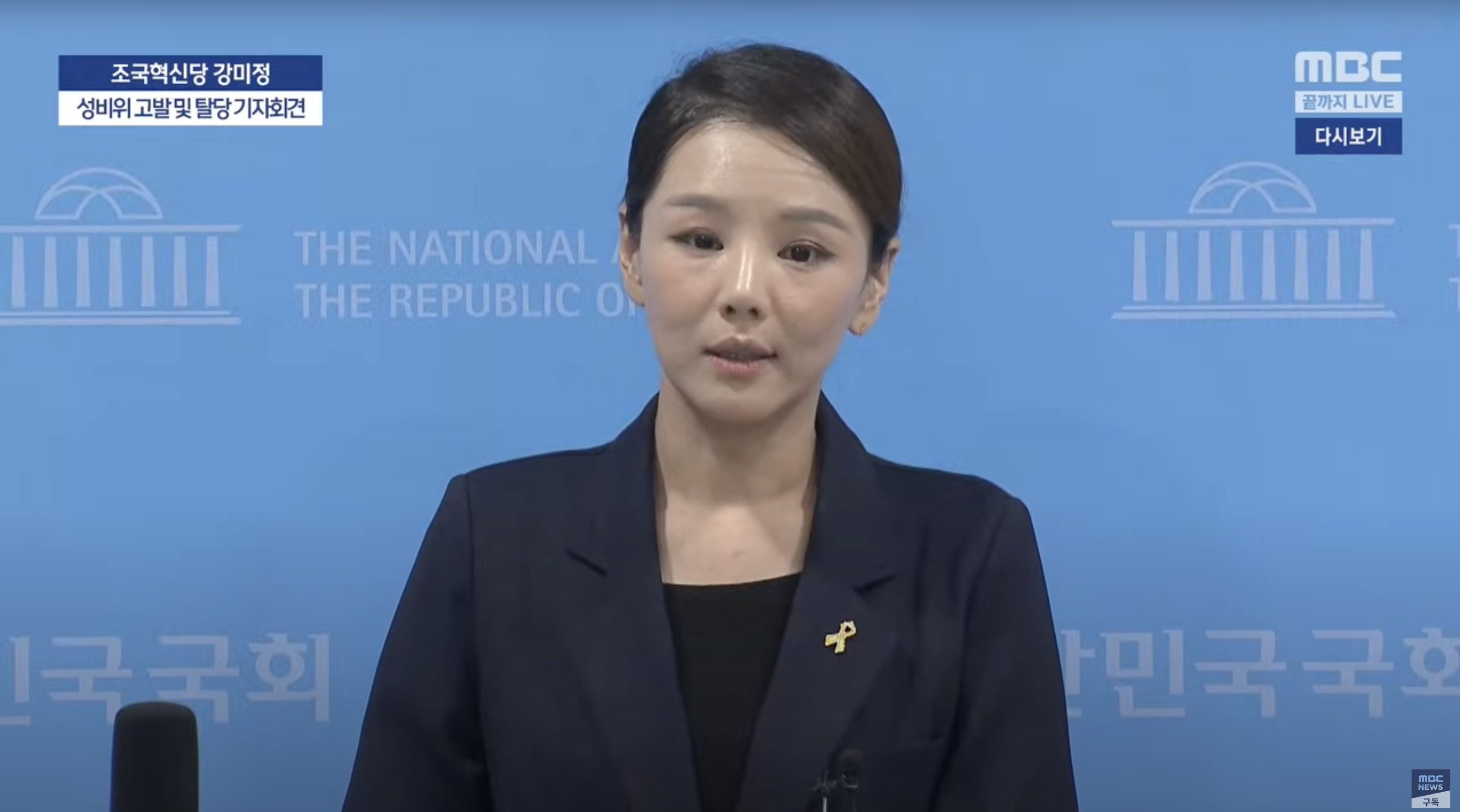 조국혁신당 강미정 대변인이 당내 성 비위 사건 처리 과정에 심각한 문제를 지적하며 탈당을 선언했다.