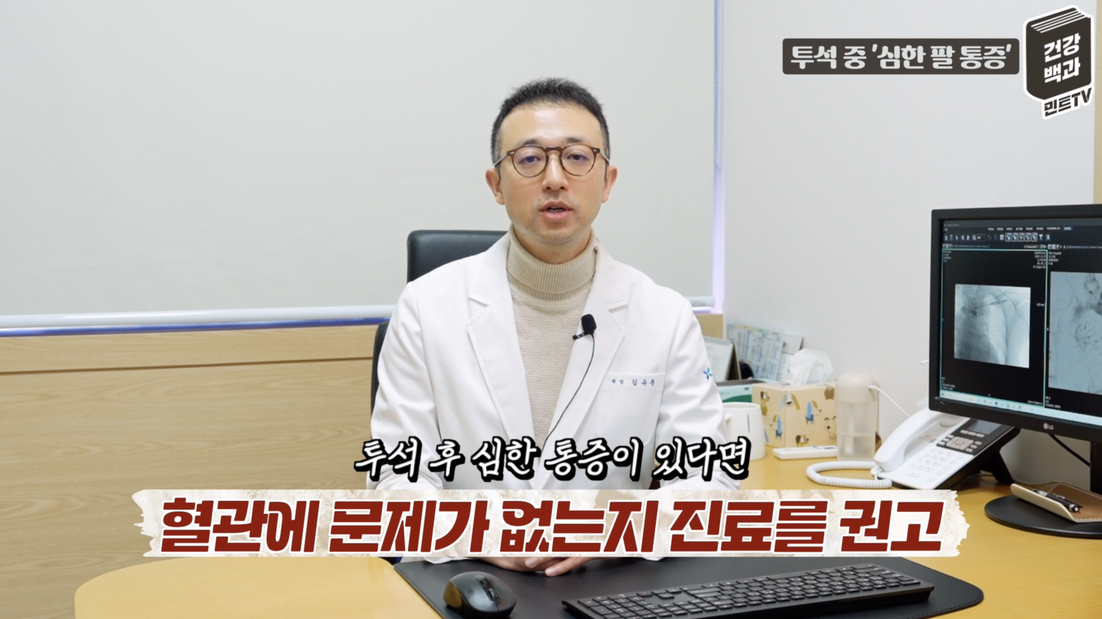 투석혈관이 있는 팔에서 통증이 발생하는 경우, 단순한 근육통이 아닐 수 있다. 투석환자는 동정맥루(AVF)나 인조혈관(AVG)을 이용하는데, 이 부위에 협착(좁아짐)이나 유출 이상이 생기면 혈류가 원활히 흐르지 않아 통증이 발생할 수 있다. 특히 혈류가 주변 조직으로 새면서 조직 내 압력이 높아질 경우 강한 통증을 느낄 수 있다. 심한 통증이 반복될 경우 혈관초음파 등으로 상태를 확인해야 한다.