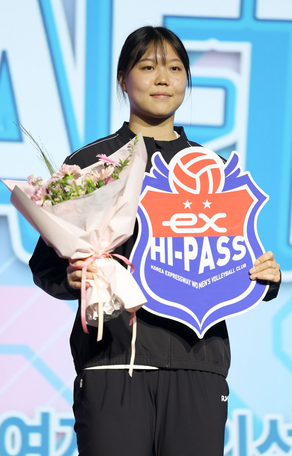 한국도로공사는 5일 서울 강서구 메이필드 호텔에서 열린 2025~2026 한국배구연맹(KOVO) 여자 신인선수 드래프트에서 1라운드 전체 1순위로 미들블로커 이지윤(중앙여고)을 지명했다. 이번 드래프트에서 최대어로 꼽힌 이지윤은 2007년생으로 신장은 188㎝다.