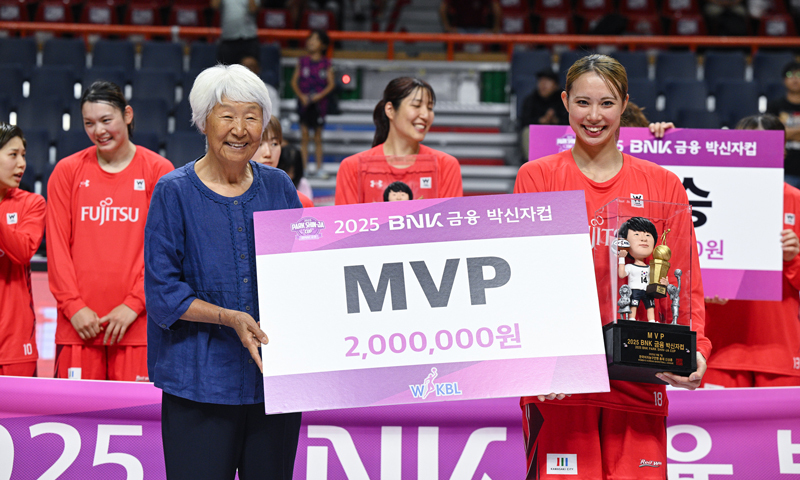 한편 후지쯔는 지난해부터 2년 연속 우승 트로피를 품으며 박신자컵 역대 2회 우승팀 반열에 올랐다. 통산 최다 우승은 하나은행이 3회(2018~2020년)로 여전히 선두를 달리고 있다.