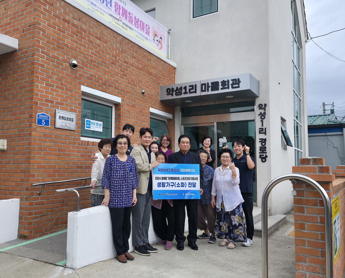 지난 12일 대구체력인증센터 직원들은 포항시 흥해읍 약성 1리 마을회관을 방문해 ‘농어촌 상생 협력 기금’으로 마련한 소파를 전달했다. 이번 기부는 고령 인구 비중이 높은 흥해읍 어르신들의 편안한 휴식 공간 마련에 도움이 되고자 추진됐다.