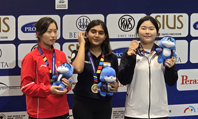 특히 10m 공기권총 본선에서 올림픽 챔피언다운 안정적인 경기 운영을 자랑했다. 584점을 기록해 2위로 결선에 진출했다. 결선에서는 중국의 야오 치안쉰, 헝가리의 베로니카 마요르와 함께 최상위권 경쟁을 벌였다. 경기 중반까지 메달권을 유지하며 선두 그룹과 치열한 접전을 벌였다. 하지만 후반부 8번째 시리즈에서 아쉽게 순위가 밀리며 동메달로 경기를 마무리했다. 금메달은 242.6점을 기록한 에샤 싱(인도)이 대이변을 일으키며 차지했다.